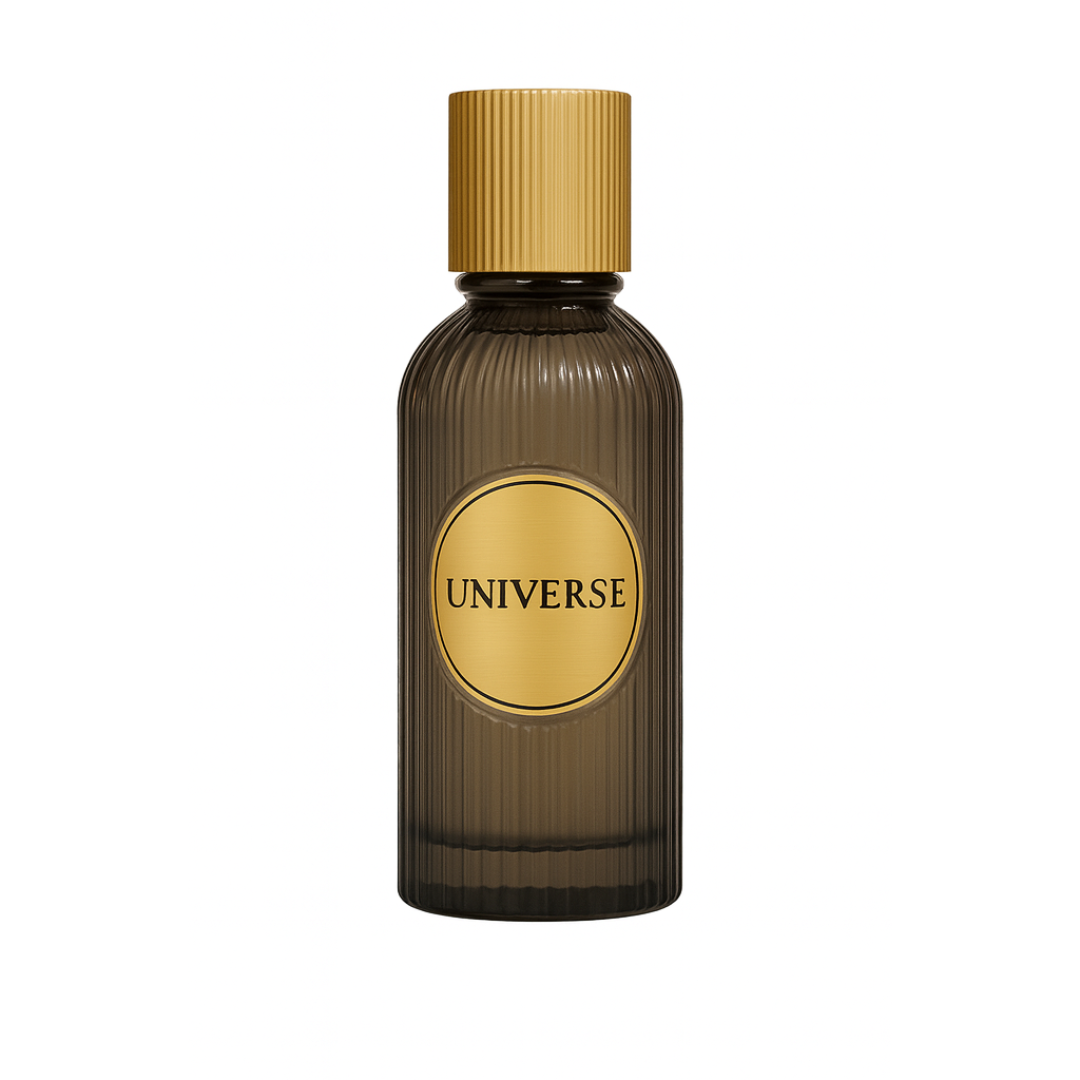 Universe is a bold, warm, and smoky fragrance crafted for those who appreciate depth and elegance. Housed in a dark ribbed glass bottle with a refined gold plate, this scent brings together sophistication and long-lasting richness.